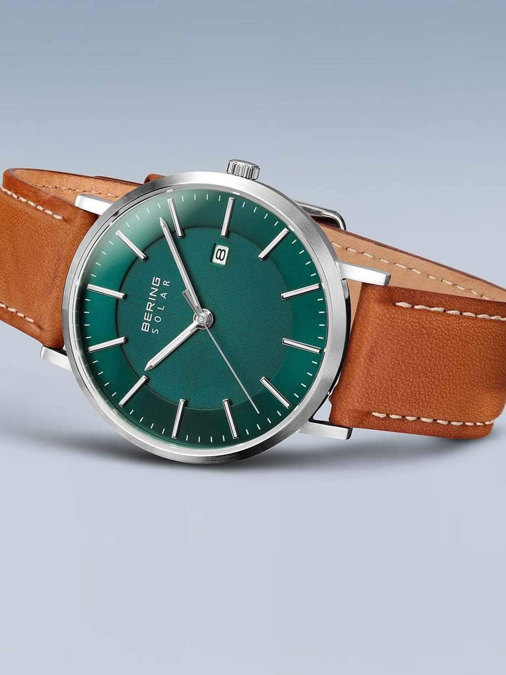 • Manufacturer no.: 15439-508 • Manufacturer series: Herren Solar 40mm • Functions: Date, Hour, Minute, Second, Solar • Movement: Solar (quartz) • Dial color: Green • Display: Analog • Water resistant: 10 • Bezel: Fixed • Surface finish: Matted, Polished • Case color: Silver • Case material: Stainless steel • Case thickness: 10 • Case shape: Round • Case width: 40 • Caseback: screwed, Stainless steel bottom • Gender: Mens • Glas: anti-reflecting, Saphire glass • Lighting: Illumin. hands, Illumin. indexes • Style: Classic • Strap material: Calf leather • Strap color: Brown • Lug width: 20 • Clasp: Buckle clasp • Max wrist circumferences: 220 • Item weight: 0.05 • Scope of delivery: Box, Instruction, Packaging, Warranty documents