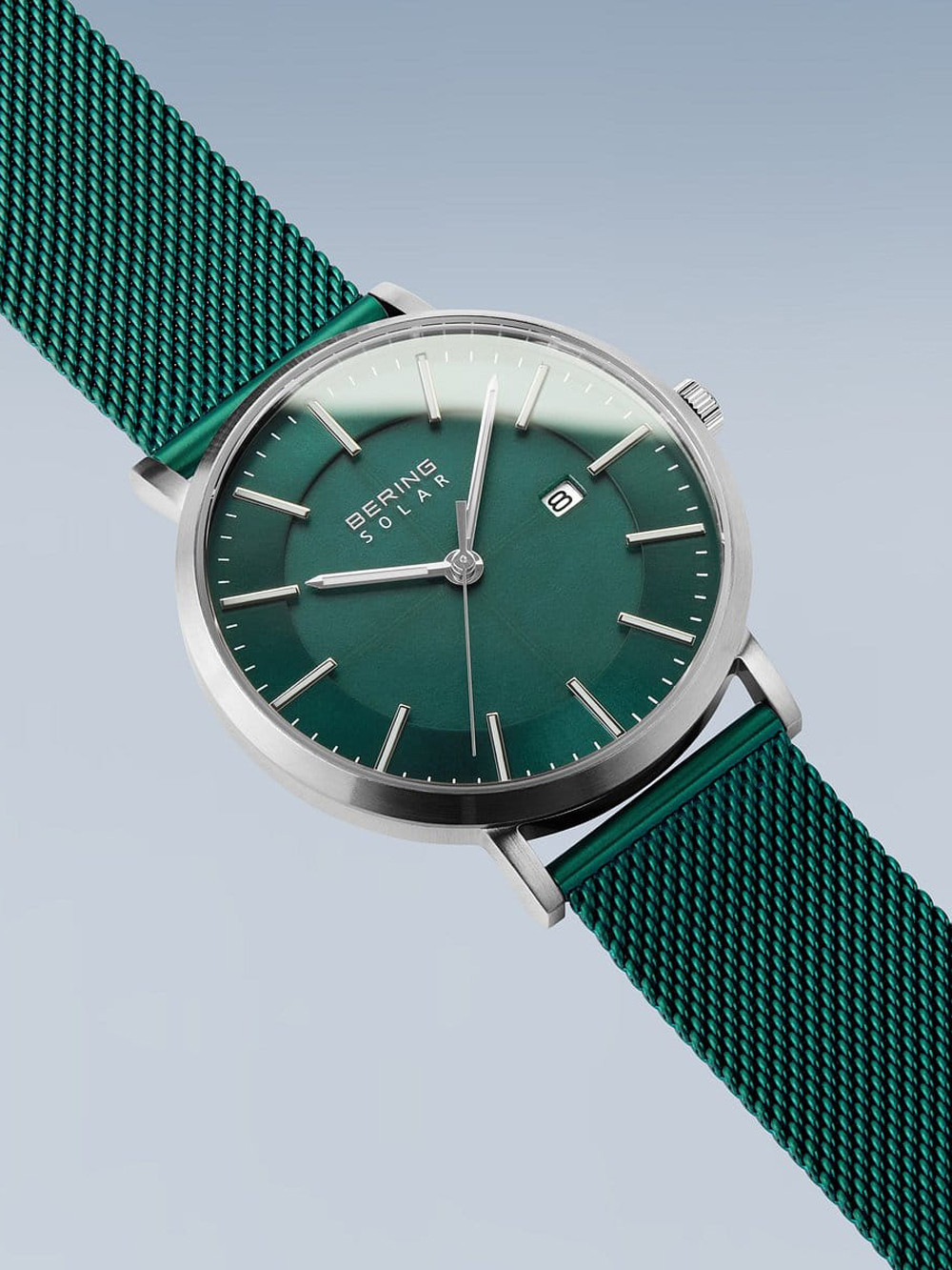 • Manufacturer no.: 15439-808 • Manufacturer series: Herren Solar 40mm • Functions: Date, Hour, Minute, Second, Solar • Movement: Solar (quartz) • Dial color: Green • Display: Analog • Water resistant: 10 • Bezel: Fixed • Surface finish: Matted, Polished • Case color: Silver • Case material: Stainless steel • Case thickness: 10 • Case shape: Round • Case width: 40 • Caseback: screwed, Stainless steel bottom • Gender: Mens • Glas: anti-reflecting, Saphire glass • Lighting: Illumin. hands, Illumin. indexes • Style: Classic • Strap material: Stainless steel • Strap color: Green • Lug width: 20 • Clasp: Folding clasp • Max wrist circumferences: 210 • Item weight: 0.09 • Scope of delivery: Box, Instruction, Packaging, Warranty documents