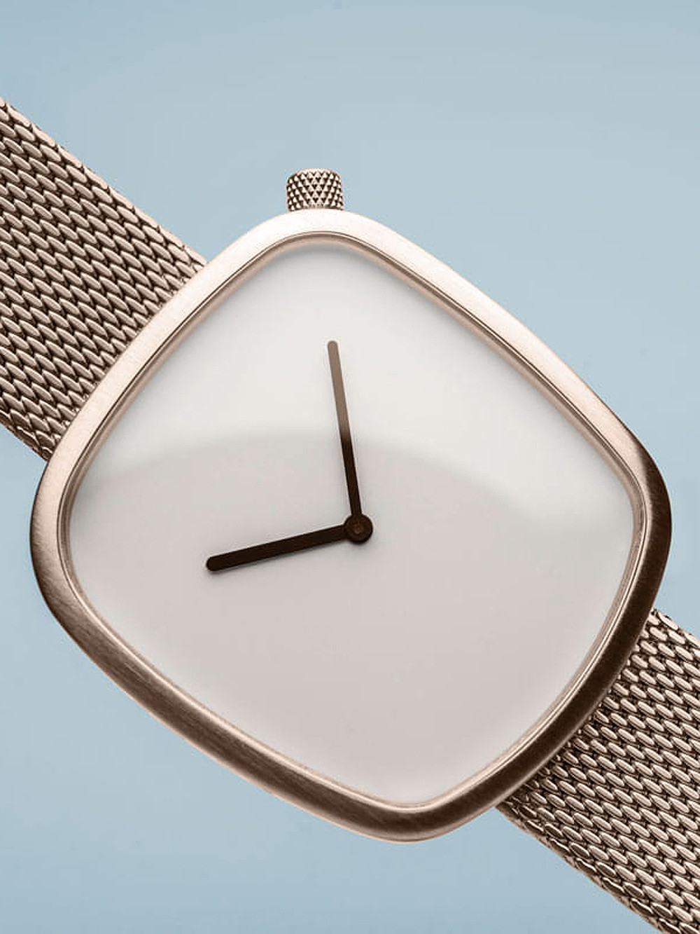 • Manufacturer no.: 18040-364 • Manufacturer series: Pebble Unisex 43mm • Functions: Hour, Minute • Movement: Battery (quartz) • Dial color: White • Display: Analog • Water resistant: 3 • Bezel: Fixed • Surface finish: Matted, Polished • Case color: Rosé gold • Case material: Stainless steel • Case thickness: 6 • Case shape: Rectangle • Case width: 43 • Caseback: pressed, Stainless steel bottom • Gender: Ladies, Mens, Unisex • Glas: anti-reflecting, Saphire glass • Style: Classic • Strap material: Stainless steel • Strap color: Rosé gold • Lug width: 20 • Clasp: Clip clasp • Max wrist circumferences: 210 • Item weight: 0.07 • Scope of delivery: Box, Instruction, Packaging, Warranty documents
