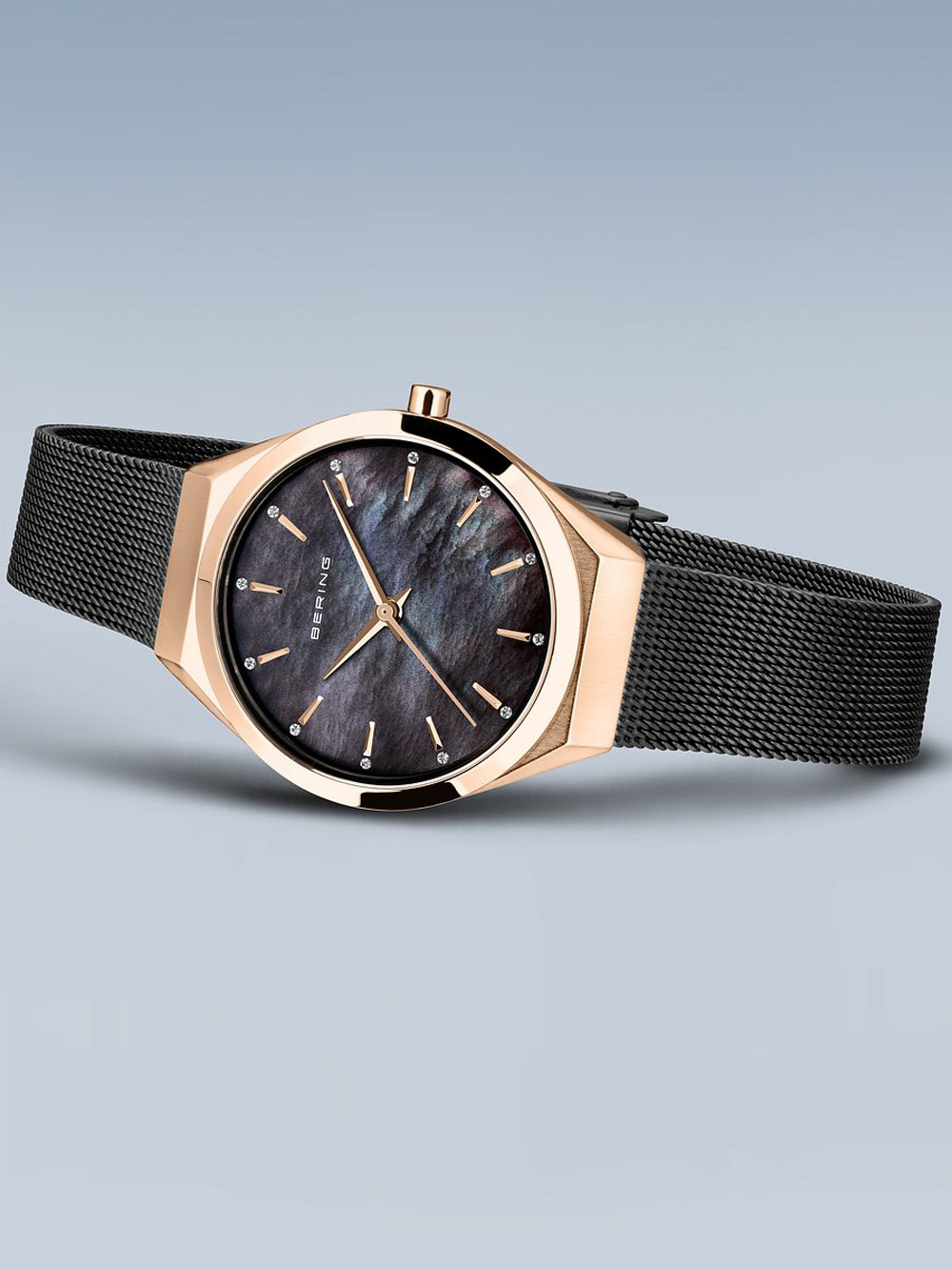 • Manufacturer no.: 18729-166 • Manufacturer series: Damen Ultra Slim 29mm • Functions: Hour, Minute, Second • Movement: Battery (quartz) • Dial color: Black, Mother of pearl • Display: Analog • Water resistant: 3 • Bezel: Fixed • Surface finish: Matted, Polished • Case color: Rosé gold • Case material: Stainless steel • Case thickness: 6 • Case shape: Round • Case trimming: Zirconia • Case width: 29 • Caseback: pressed, Stainless steel bottom • Gender: Ladies • Glas: anti-reflecting, Saphire glass • Style: Classic • Strap material: Stainless steel • Strap color: Black • Lug width: 14 • Clasp: Clip clasp • Max wrist circumferences: 195 • Item weight: 0.04 • Scope of delivery: Box, Instruction, Packaging, Warranty documents