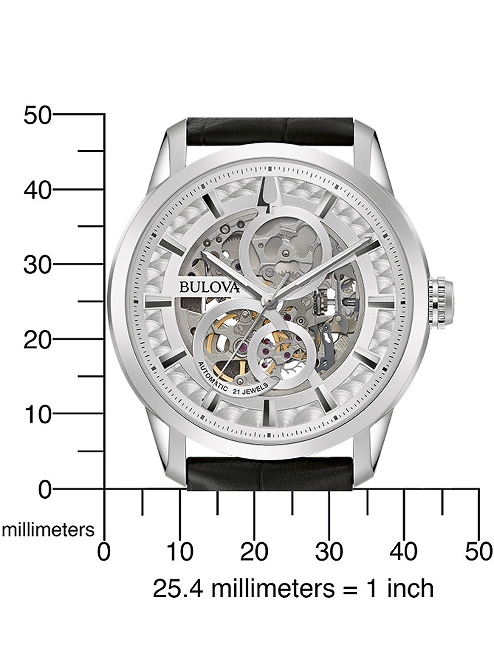 • Manufacturer no.: 96A266 • Manufacturer series: Sutton automatic 43mm • Functions: Hour, Minute, Second • Movement: Automatic • Movement label: Miyota • Dial color: Silver • Display: Analog • Water resistant: 3 • Bezel: Fixed • Surface finish: Matted, Polished • Case color: Silver • Case material: Stainless steel • Case thickness: 13 • Case width: 43 • Caseback: Glas bottom, screwed • Gender: Mens • Glas: hardened, Mineral glass • Lighting: Illumin. hands • Style: Classic • Strap material: Calf leather • Strap color: Black • Lug width: 22 • Clasp: Folding clasp • Max wrist circumferences: 230 • Item weight: 0.09 • Scope of delivery: Box, Instruction, Packaging, Warranty documents