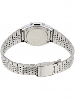 Brand: Casio • Manufacturer no.: LA690WEA-1EF • Manufacturer series: Vintage 27mm • Functions: Alarm, Automatic calender, Hour, Minute, Second, Stop function • Movement: Battery (quartz) • Dial color: Black • Display: Digital • Water resistant: 3 • Bezel: Fixed • Surface finish: Matted, Polished • Case color: Silver • Case material: Resin • Case thickness: 7 • Case shape: Rectangle • Case width: 27 • Caseback: screwed, Stainless steel bottom • Gender: Ladies • Glas: acrylic glass • Style: Modern • Strap material: Stainless steel • Strap color: Silver • Lug width: 15 • Clasp: Clip clasp • Max wrist circumferences: 195 • Item weight: 0.03 • Scope of delivery: Box, Instruction, Packaging, Warranty documents"