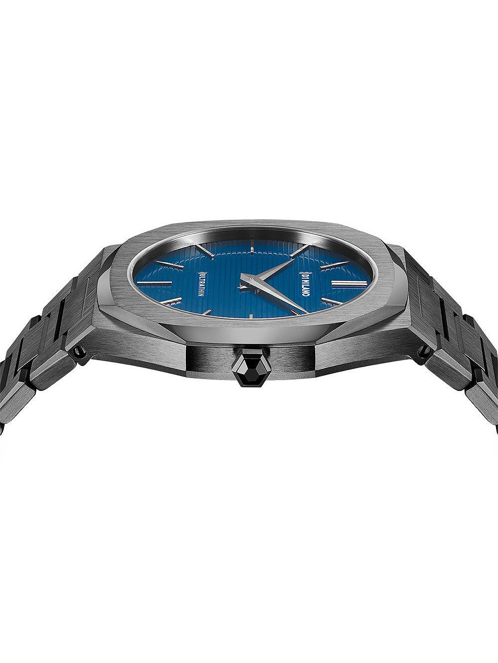 • Manufacturer no.: UTBJ12 • Manufacturer series: Ultra Thin 40mm • Functions: Hour, Minute • Movement: Battery (quartz) • Movement label: 1L22, Miyota • Dial color: Blue • Display: Analog • Water resistant: 5 • Bezel: Fixed • Surface finish: Matted, Polished • Case color: Black • Case material: Stainless steel • Case thickness: 6 • Case shape: Barrel • Case width: 40 • Caseback: screwed, Stainless steel bottom • Gender: Mens • Glas: anti-reflecting, Saphire glass • Style: Modern • Strap material: Stainless steel • Strap color: Black • Lug width: 24 • Clasp: Butterfly clasp • Max wrist circumferences: 210 • Item weight: 0.11