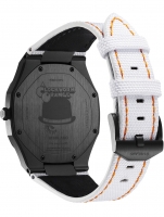 • Manufacturer no.: UTNJCW • Manufacturer series: Ultra Thin - a Clockwork Orange 40mm • Functions: Hour, Minute • Movement: Battery (quartz) • Movement label: 1L22, Miyota • Dial color: Black • Display: Analog • Water resistant: 5 • Bezel: Fixed • Surface finish: Matted, Polished • Case color: Black • Case material: Stainless steel • Case thickness: 6 • Limited edition: X / 300, Yes • Case shape: Barrel • Case width: 40 • Caseback: screwed, Stainless steel bottom • Gender: Mens • Glas: anti-reflecting, Saphire glass • Style: Modern • Strap material: Calf leather, Textile • Strap color: white • Lug width: 24 • Clasp: Buckle clasp • Max wrist circumferences: 205 • Item weight: 0.06