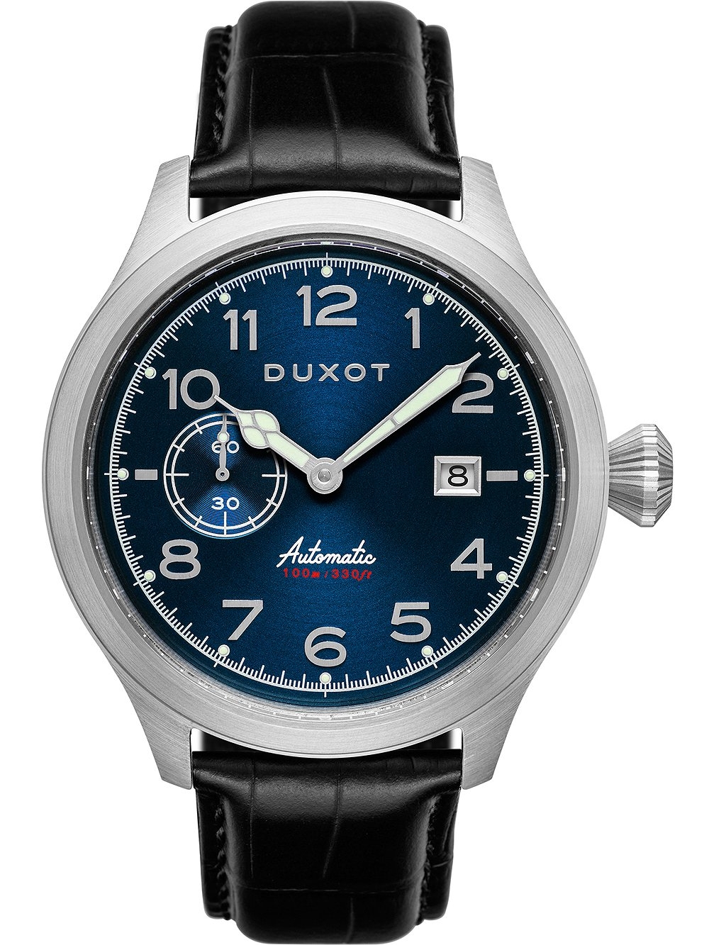 • Manufacturer no.: DX-2021-01 • Manufacturer series: Altius automatic 46mm • Functions: Date, Hour, Minute, Second • Movement: Automatic • Dial color: Blue • Display: Analog • Water resistant: 10 • Bezel: Fixed • Surface finish: Matted, Polished • Case color: Silver • Case material: Stainless steel • Case thickness: 15 • Case width: 46 • Caseback: screwed, Stainless steel bottom • Gender: Mens • Glas: anti-reflecting, Saphire glass • Lighting: Illumin. hands • Style: Classic • Strap material: Calf leather • Strap color: Black • Lug width: 22 • Clasp: Buckle clasp • Max wrist circumferences: 230 • Item weight: 0.11 • Scope of delivery: Box, Instruction, Packaging, Warranty documents