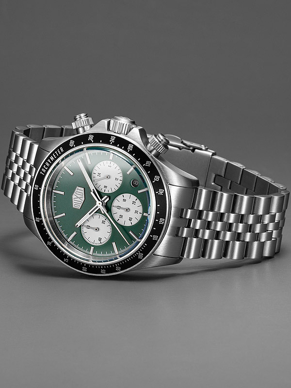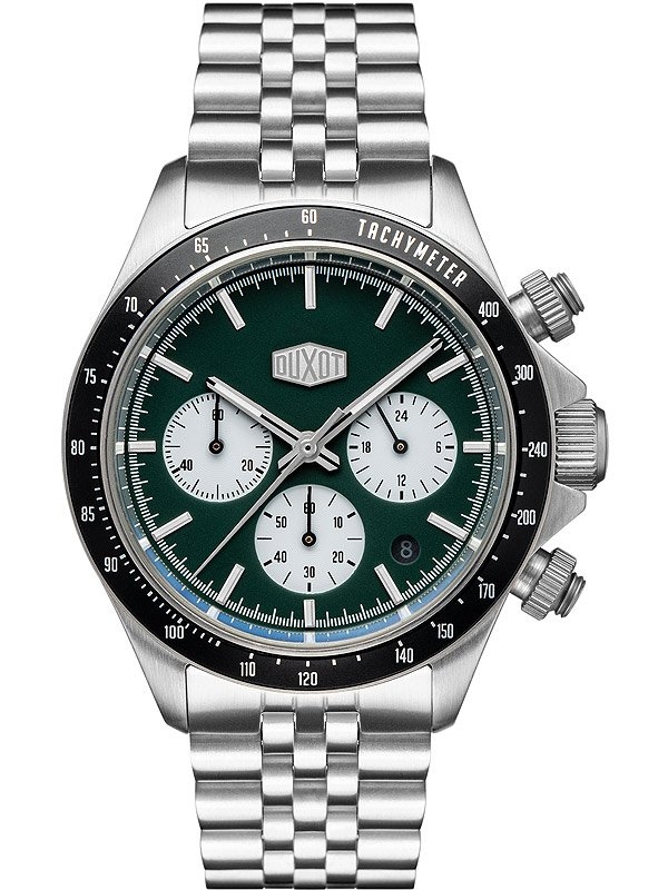 • Manufacturer no.: DX-2028-11 • Manufacturer series: Accelero Chronograph 40mm • Functions: 24-hours, Chronograph, Date, Hour, Minute, Second • Movement: Battery (quartz) • Dial color: Green • Display: Analog • Water resistant: 10 • Bezel: Fixed • Surface finish: Matted, Polished • Case color: Silver • Case material: Stainless steel • Case thickness: 14 • Case width: 40 • Caseback: screwed, Stainless steel bottom • Gender: Mens • Crown: Screwed • Glas: hardened, Mineral glass • Lighting: Illumin. hands, Illumin. indexes • Style: Sporty • Strap material: Stainless steel • Strap color: Silver • Lug width: 20 • Clasp: Folding clasp • Max wrist circumferences: 215 • Item weight: 0.14 • Scope of delivery: Box, Instruction, Packaging, Warranty documents