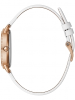 Brand: Guess • Manufacturer no.: GW0099L4 • Manufacturer series: Bellini 30mm • Functions: Hour, Minute, Second • Movement: Battery (quartz) • Dial color: White • Display: Analog • Water resistant: 3 • Bezel: Fixed • Surface finish: Matted, Polished • Case color: Rosé gold • Case material: Stainless steel • Case thickness: 9 • Case trimming: Zirconia • Case width: 30 • Caseback: pressed, Stainless steel bottom • Gender: Ladies • Glas: hardened, Mineral glass • Style: Modern • Strap material: Calf leather • Strap color: white • Lug width: 10 • Clasp: Buckle clasp • Max wrist circumferences: 190 • Item weight: 0.02