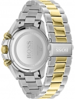 Brand: Hugo Boss • Manufacturer no.: 1513908 • Manufacturer series: Admiral Chronograph 46mm • Functions: 24-hours, Chronograph, Date, Hour, Minute, Second • Movement: Battery (quartz) • Dial color: Black • Display: Analog • Water resistant: 10 • Bezel: counterclockwise, Turnable • Surface finish: Matted, Polished • Case color: Gold, Silver • Case material: Stainless steel • Case thickness: 13 • Case width: 46 • Caseback: screwed, Stainless steel bottom • Gender: Mens • Crown: Screwed • Glas: hardened, Mineral glass • Lighting: Illumin. hands, Illumin. indexes • Style: Sporty • Strap material: Stainless steel • Strap color: Gold, Silver • Lug width: 22 • Clasp: Folding clasp • Max wrist circumferences: 200 • Item weight: 0.18 • Scope of delivery: Box, Instruction, Packaging, Warranty documents"
