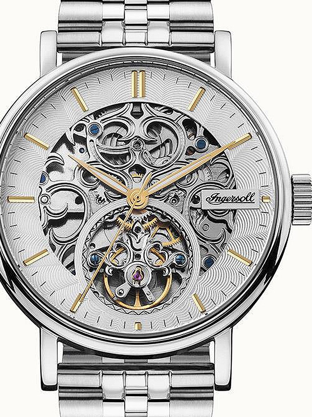 Brand: Ingersoll • Manufacturer no.: I05803B • Manufacturer series: The Charles automatic 44mm I05803B • Functions: Hour, Minute, Second • Movement: Automatic • Dial color: Silver • Display: Analog • Water resistant: 5 • Bezel: Fixed • Surface finish: Polished • Case color: Silver • Case material: Stainless steel • Case thickness: 14 • Case shape: Round • Case width: 44 • Caseback: Glas bottom, screwed • Gender: Mens • Glas: hardened, Mineral glass • Lighting: Illumin. hands • Style: Classic • Strap material: Stainless steel • Strap color: Silver • Lug width: 22 • Clasp: Buckle clasp • Max wrist circumferences: 230 • Item weight: 0.16 • Scope of delivery: Box, Instruction, Packaging, Warranty documents"