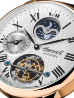 Brand: Ingersoll • Manufacturer no.: I07402 • Manufacturer series: The Riff Automatik 44mm • Functions: 2nd timezone, Hour, Minute, Moon phase • Movement: Automatic • Dial color: Silver • Display: Analog • Water resistant: 5 • Bezel: Fixed • Surface finish: Matted, Polished • Case color: Rosé gold • Case material: Stainless steel • Case thickness: 16 • Case shape: Round • Case width: 44 • Caseback: Glas bottom, screwed • Gender: Mens • Glas: hardened, Mineral glass • Style: Classic • Strap material: Calf leather • Strap color: Black • Lug width: 22 • Clasp: Buckle clasp • Max wrist circumferences: 220 • Item weight: 0.09 • Scope of delivery: Box, Instruction, Packaging, Warranty documents"