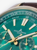 • Manufacturer no.: 1-2117H • Manufacturer series: Liverpool chronograph 44mm • Functions: 24-hours, Chronograph, Date, Hour, Minute, Second • Movement: Battery (quartz) • Dial color: Green • Display: Analog • Water resistant: 20 • Bezel: Fixed • Surface finish: Matted, Polished • Case color: Gold • Case material: Stainless steel • Case thickness: 13 • Case shape: Round • Case width: 44 • Caseback: screwed, Stainless steel bottom • Gender: Mens • Crown: Screwed • Glas: hardened, Mineral glass • Lighting: Illumin. hands, Illumin. indexes • Style: Sporty • Strap material: Calf leather, Silicon • Strap color: Brown • Lug width: 22 • Clasp: Buckle clasp • Max wrist circumferences: 220 • Item weight: 0.09