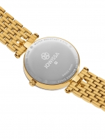 • Manufacturer no.: J5.629.M • Manufacturer series: Facet Strass 29mm • Functions: Hour, Minute • Movement: Battery (quartz) • Movement label: Swiss Made • Dial color: Golden • Display: Analog • Water resistant: 5 • Bezel: Fixed • Surface finish: Polished • Case color: Gold • Case material: Stainless steel • Case thickness: 9 • Case shape: Round • Case trimming: Zirconia • Case width: 29 • Caseback: pressed, Stainless steel bottom • Gender: Ladies • Glas: hardened, Mineral glass • Style: Elegant • Strap material: Stainless steel • Strap color: Gold • Lug width: 15 • Clasp: Clip clasp • Max wrist circumferences: 200 • Item weight: 0.06 • Scope of delivery: Box, Instruction, Packaging, Warranty documents