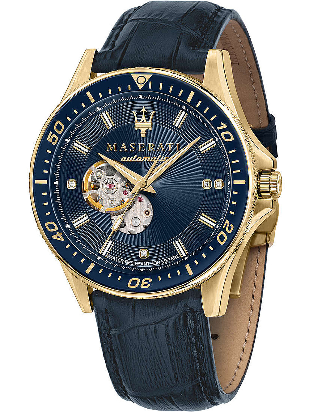 • Manufacturer no.: R8823140004 • Manufacturer series: Sfida automatic 44mm • Functions: Hour, Minute, Second • Movement: Automatic • Dial color: Blue • Display: Analog • Water resistant: 10 • Bezel: counterclockwise, Turnable • Surface finish: Matted, Polished • Case color: Gold • Case material: Stainless steel • Case thickness: 13 • Case trimming: Diamond • Case width: 44 • Caseback: screwed, Stainless steel bottom • Gender: Mens • Crown: Screwed • Glas: anti-reflecting, Saphire glass • Lighting: Illumin. hands, Illumin. indexes • Style: Sporty • Strap material: Stainless steel • Strap color: Gold • Lug width: 22 • Clasp: Butterfly clasp • Max wrist circumferences: 220 • Item weight: 0.22