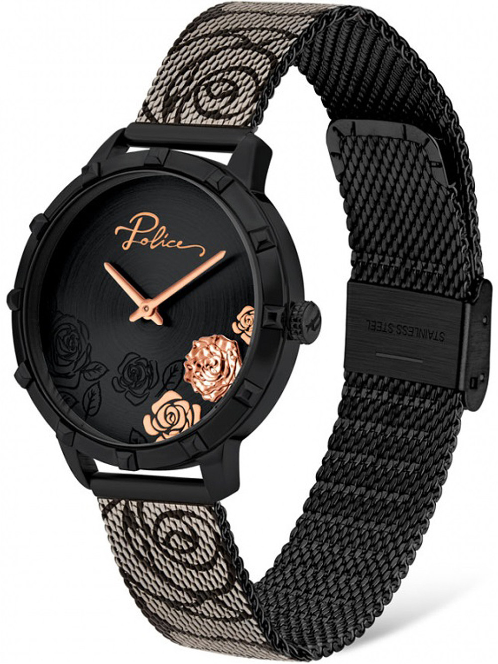 Brand: Police • Manufacturer no.: PL16040MSB.02MM • Manufacturer series: Marietas 36mm • Functions: Hour, Minute • Movement: Battery (quartz) • Dial color: Black • Display: Analog • Water resistant: 3 • Bezel: Fixed • Surface finish: Polished • Case color: Black • Case material: Stainless steel • Case thickness: 9 • Case width: 36 • Caseback: pressed, Stainless steel bottom • Gender: Ladies • Glas: hardened, Mineral glass • Style: Modern • Strap material: Stainless steel • Strap color: Black, Silver • Lug width: 16 • Clasp: Buckle clasp • Max wrist circumferences: 200 • Item weight: 0.06