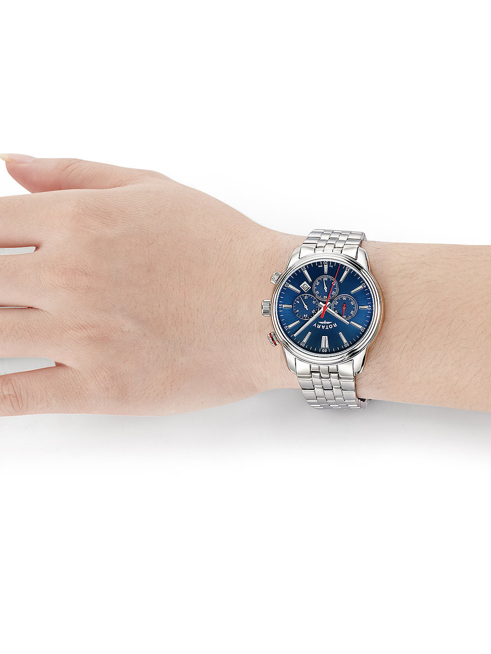 • Manufacturer no.: GB05083/05 • Manufacturer series: Oxford chrono 42mm • Functions: 24-hours, Chronograph, Date, Hour, Minute, Second • Movement: Battery (quartz) • Dial color: Blue • Display: Analog • Water resistant: 5 • Bezel: Fixed • Surface finish: Matted, Polished • Case color: Silver • Case material: Stainless steel • Case thickness: 11 • Case shape: Round • Case width: 42 • Caseback: screwed, Stainless steel bottom • Gender: Mens • Glas: anti-reflecting, Saphire glass • Lighting: Illumin. hands, Illumin. indexes • Style: Sporty • Strap material: Stainless steel • Strap color: Silver • Lug width: 21 • Clasp: Butterfly clasp • Max wrist circumferences: 210 • Item weight: 0.15 • Scope of delivery: Box, Instruction, Packaging, Warranty documents