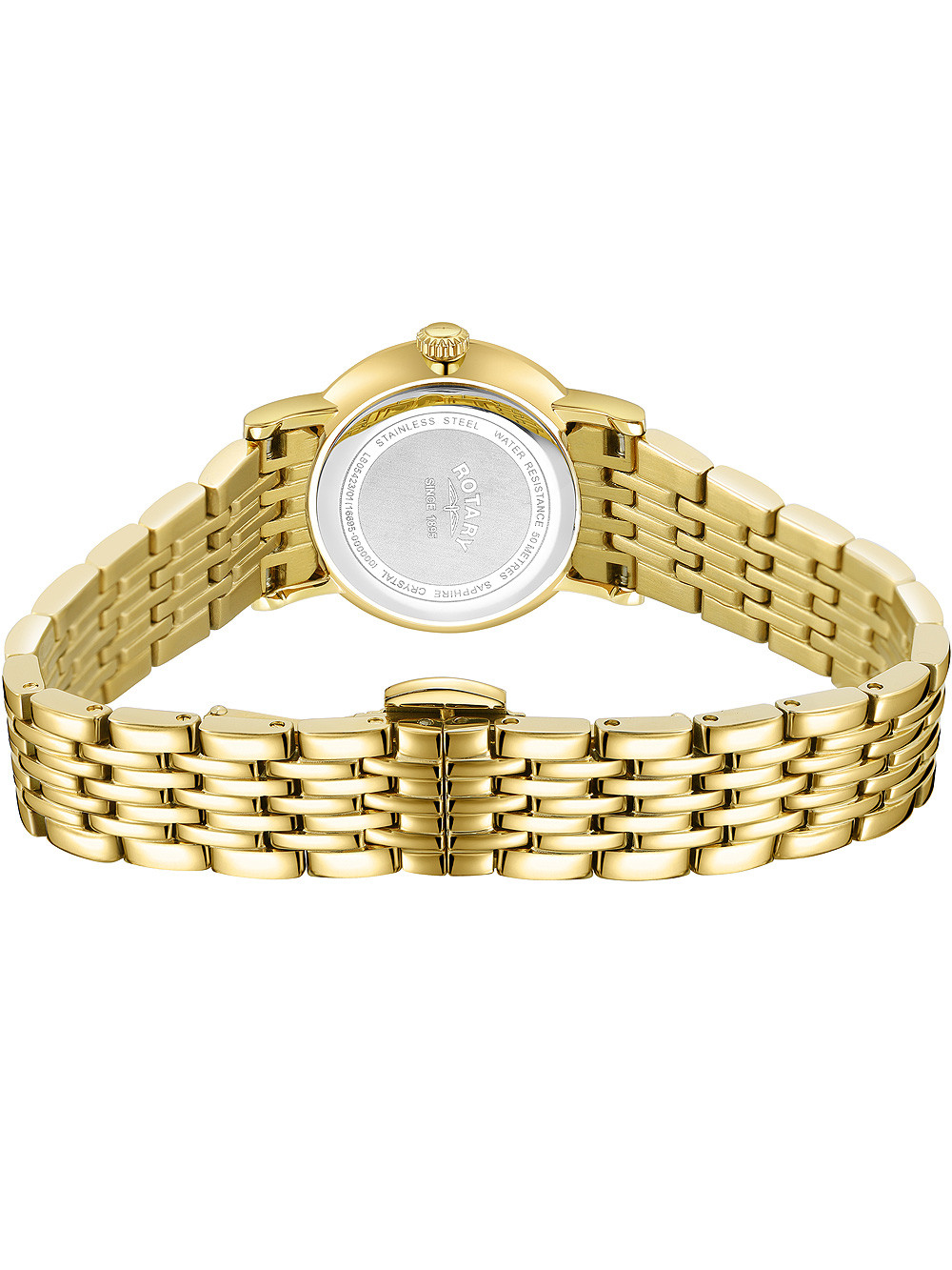 • Manufacturer no.: LB05423/01 • Manufacturer series: Windsor 27mm • Functions: Date, Hour, Minute, Second • Movement: Battery (quartz) • Dial color: Silver • Display: Analog • Water resistant: 5 • Bezel: Fixed • Surface finish: Polished • Case color: Gold • Case material: Stainless steel • Case thickness: 8 • Case shape: Round • Case width: 27 • Caseback: pressed, Stainless steel bottom • Gender: Ladies • Glas: anti-reflecting, Saphire glass • Style: Modern • Strap material: Stainless steel • Strap color: Gold • Lug width: 14 • Clasp: Butterfly clasp • Max wrist circumferences: 180 • Item weight: 0.06 • Scope of delivery: Box, Instruction, Packaging, Warranty documents