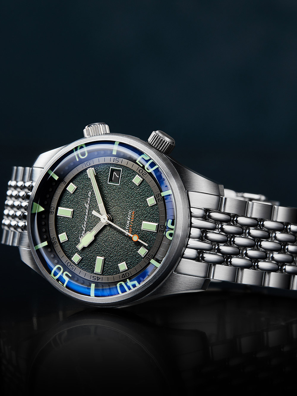 • Manufacturer no.: SP-5062-33 • Manufacturer series: Bradner Automatik 42mm • Functions: Date, Hour, Minute, Second • Movement: Automatic • Movement label: NH35, Seiko • Dial color: Green • Display: Analog • Water resistant: 18 • Bezel: bidirectional, Turnable • Surface finish: Matted, Polished • Case color: Silver • Case material: Stainless steel • Case thickness: 16 • Case shape: Round • Case width: 42 • Caseback: Glas bottom, screwed • Gender: Mens • Crown: Screwed • Glas: anti-reflecting, Saphire glass • Lighting: Illumin. hands, Illumin. indexes • Style: Sporty • Strap material: Stainless steel • Strap color: Silver • Lug width: 20 • Clasp: Folding clasp • Max wrist circumferences: 210 • Item weight: 0.18 • Scope of delivery: Box, Instruction, Packaging, Warranty documents