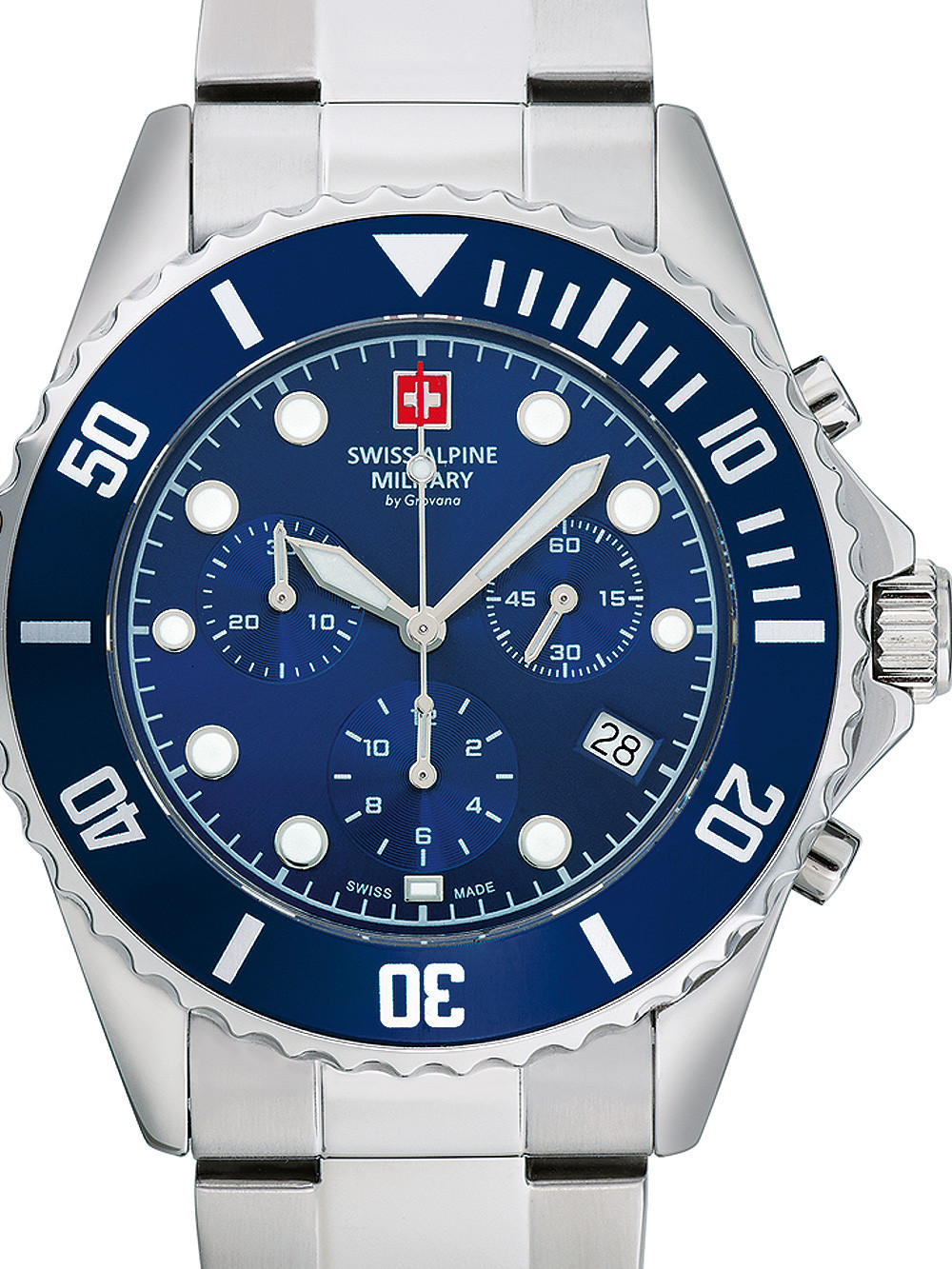 • Manufacturer no.: 7053.9135 • Manufacturer series: Serie 7053 Chrono 42mm • Functions: Chronograph, Date, Hour, Minute, Second • Movement: Battery (quartz) • Dial color: Blue • Display: Analog • Water resistant: 10 • Bezel: counterclockwise, Turnable • Surface finish: Polished • Case color: Silver • Case material: Stainless steel • Case thickness: 12 • Case shape: Round • Case width: 42 • Caseback: screwed, Stainless steel bottom • Gender: Mens • Crown: Screwed • Glas: hardened, Mineral glass • Lighting: Illumin. hands, Illumin. indexes • Style: Sporty • Strap material: Stainless steel • Strap color: Silver • Lug width: 22 • Clasp: Folding clasp • Max wrist circumferences: 210 • Item weight: 0.17 • Scope of delivery: Box, Instruction, Packaging, Warranty documents