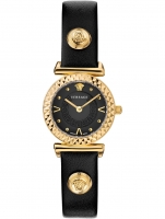• Manufacturer no.: VEAA01020 • Manufacturer series: Mini Vanity 27mm • Functions: Hour, Minute • Movement: Battery (quartz) • Dial color: Black • Display: Analog • Water resistant: 3 • Bezel: Fixed • Surface finish: Matted, Polished • Case color: Gold • Case material: Stainless steel • Case thickness: 8 • Case shape: Round • Case width: 27 • Caseback: pressed, Stainless steel bottom • Gender: Ladies • Glas: anti-reflecting, Saphire glass • Style: Modern • Strap material: Calf leather • Strap color: Black • Lug width: 14 • Clasp: Folding clasp • Max wrist circumferences: 190 • Item weight: 0.03 • Scope of delivery: Box, Instruction, Packaging, Warranty documents